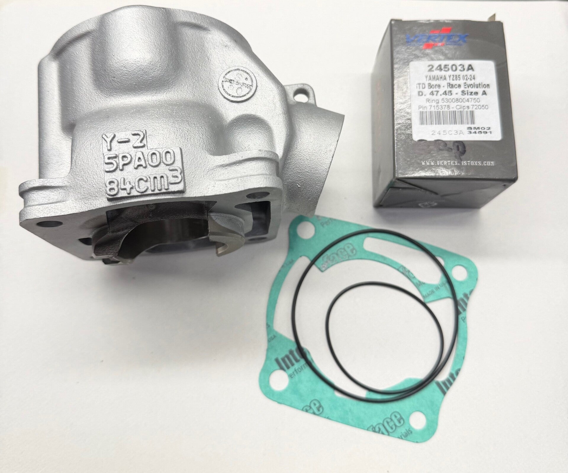 Hollannissa uudelleen pinnoitettu sylinteri, Vertex mäntäsarja sekä yläpään tiivistesarja. (Huom. vanha sylinteri on palautettava vaihdossa. Ilman vaihtosylinteriä hintaan lisätään 80,00€)